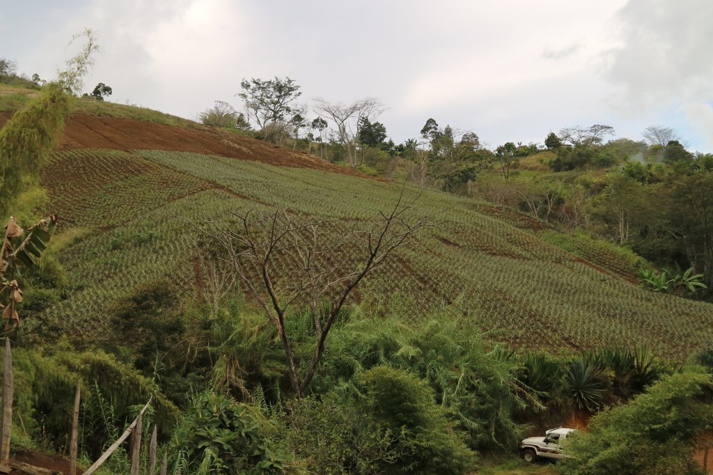 Production for domestic marketplaces has grown to a more commercial scale, such as this pineapple garden in the Benabena area close to Goroka, Eastern Highlands Province. More people are now dependent on fresh food production as their main source of income, and in some parts of the highlands close to urban centres people have replaced coffee gardens with vegetable gardens.