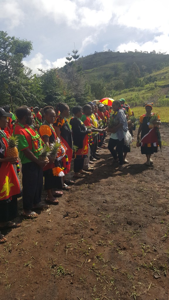 Prior to the share out, the VSLA participants lined up in two rows. Guests, including myself, passed by them to receive pineapples – a gift of the community’s hard labour [4]. In this community, pineapples have commercial significance as they are a cash crop introduced through the work of the local church leader. As the story goes, he collected discarded pineapple tops from rubbish piles as starter plants, which earned him numerous concerned looks and comments from fellow highlanders [5]. A number of families now earn money from this crop and the entrepreneurial Pastor has moved on to another food project involving bulb onions – something you’ll read more about in future blogs.